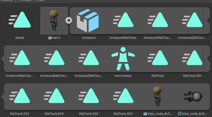 2. FBX의 세모를 누르면 그안에 애니메이션이 있는데 ctrl + d를 눌러서 복사